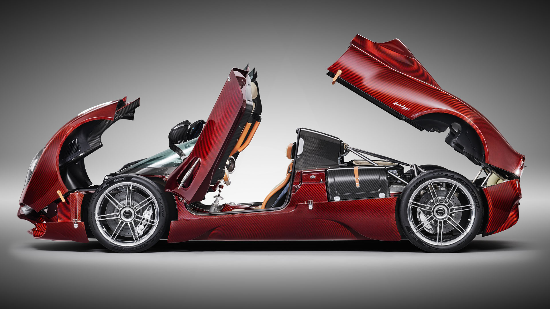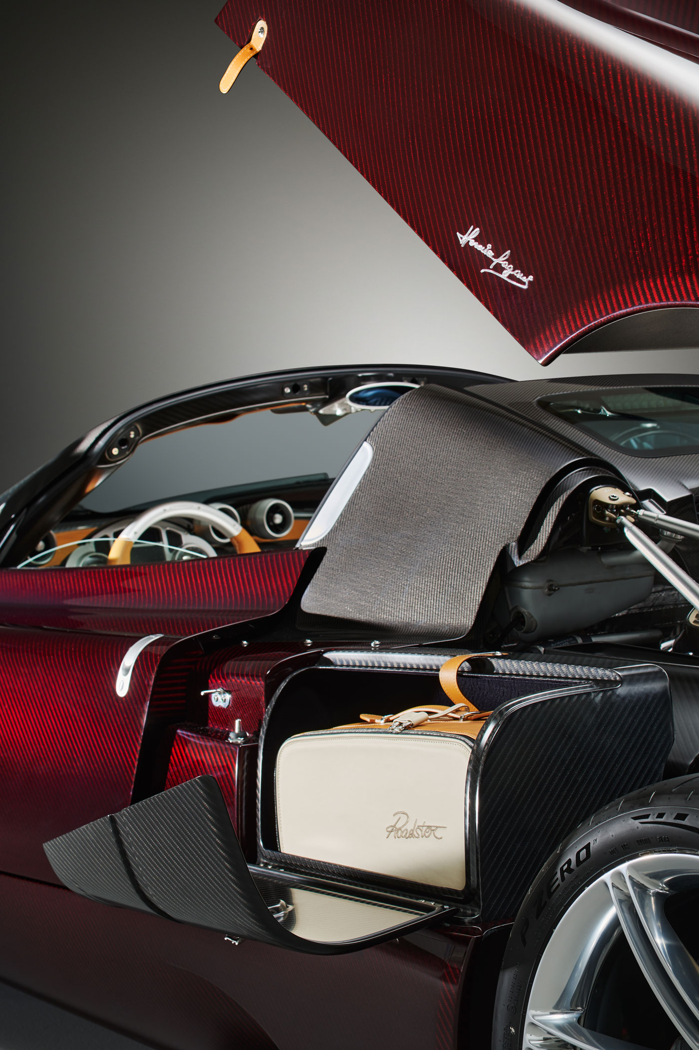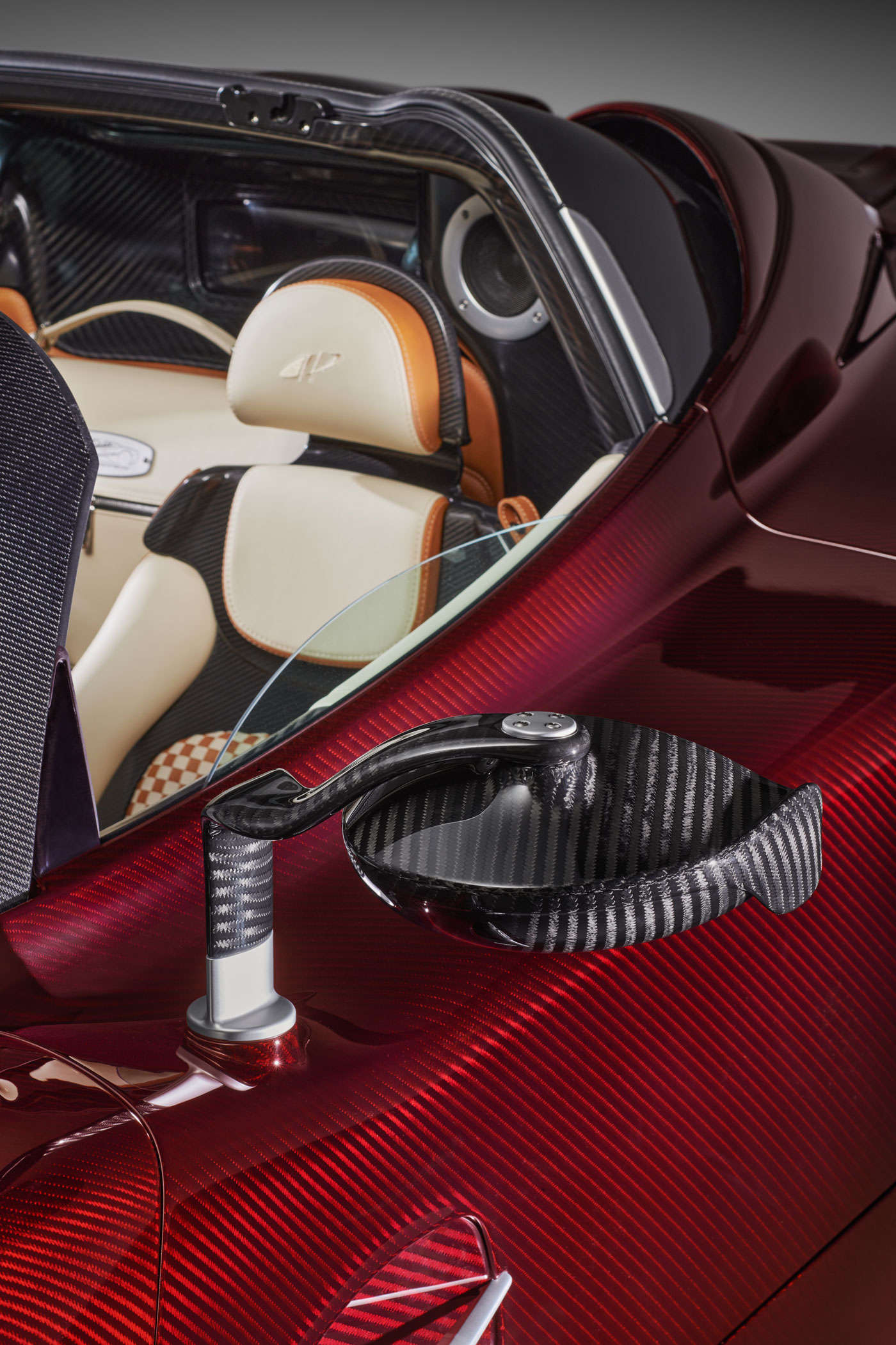 Diseño sin techo. El Pagani Utopia Roadster elimina el techo sin perder elegancia. Su estructura descapotable incluye un techo rígido de fibra de carbono o una capota de tela, manteniendo así la pureza de sus líneas y la integridad estructural del chasis original.