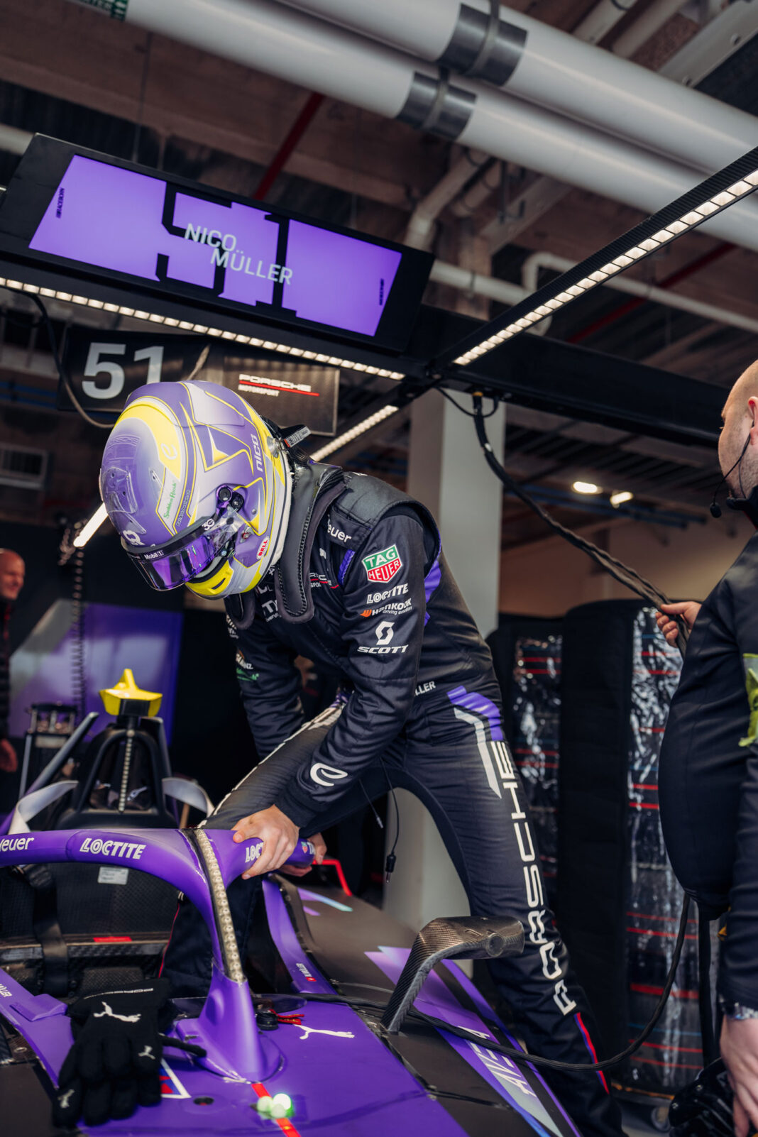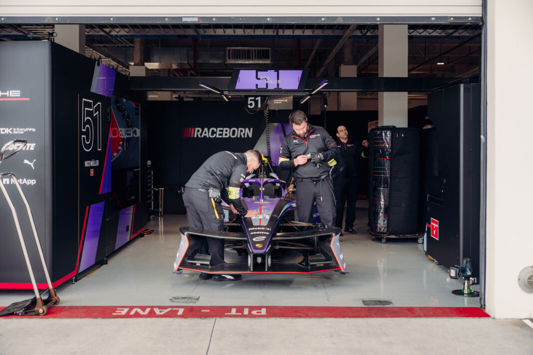 Una ligera lluvia previa añadió un componente extra de complejidad. La pista húmeda obligó a iniciar la competencia detrás del safety car, el Porsche Taycan Turbo GT, subrayando el vínculo directo entre la competición eléctrica y los modelos de producción de la marca. Cuando finalmente se dio la largada, Müller defendió su posición con autoridad, lideró buena parte de la carrera y gestionó con inteligencia la energía en un circuito donde cualquier error se paga caro. Cruzó la meta en segunda posición, logrando así su primer podio de la temporada y el primero desde su incorporación al equipo oficial.