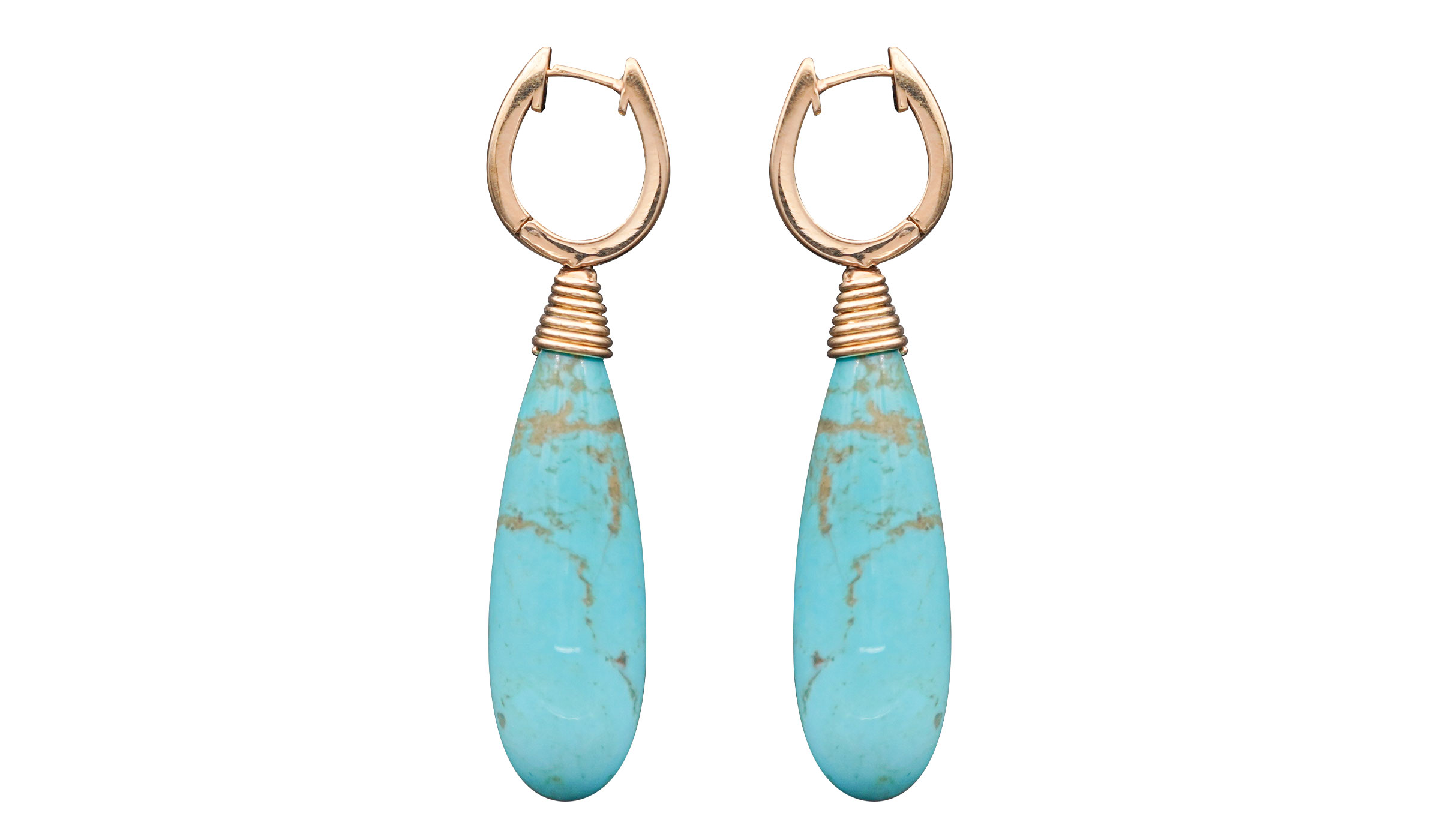 Aretes en oro amarillo 18k con turquesas iraníes en corte cabujón.