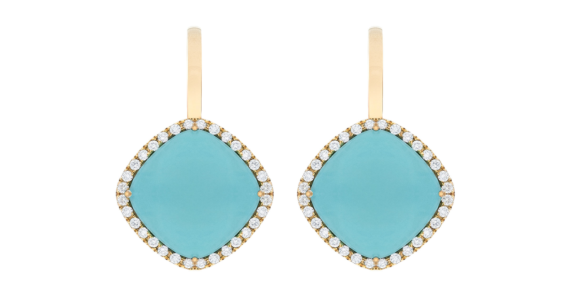 Aretes en oro amarillo 18k con diamantes y turquesas de Arizona 18 cts.