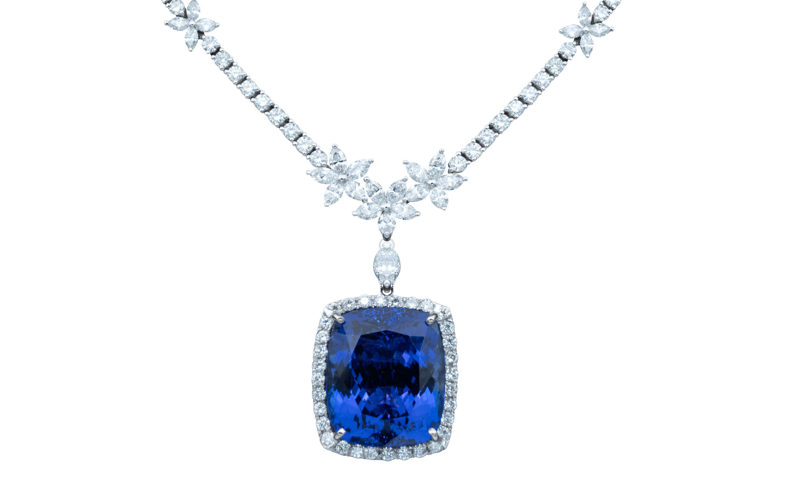 ‘Gargantilla en oro blanco 18k con diamantes y tanzanita 32 cts.
