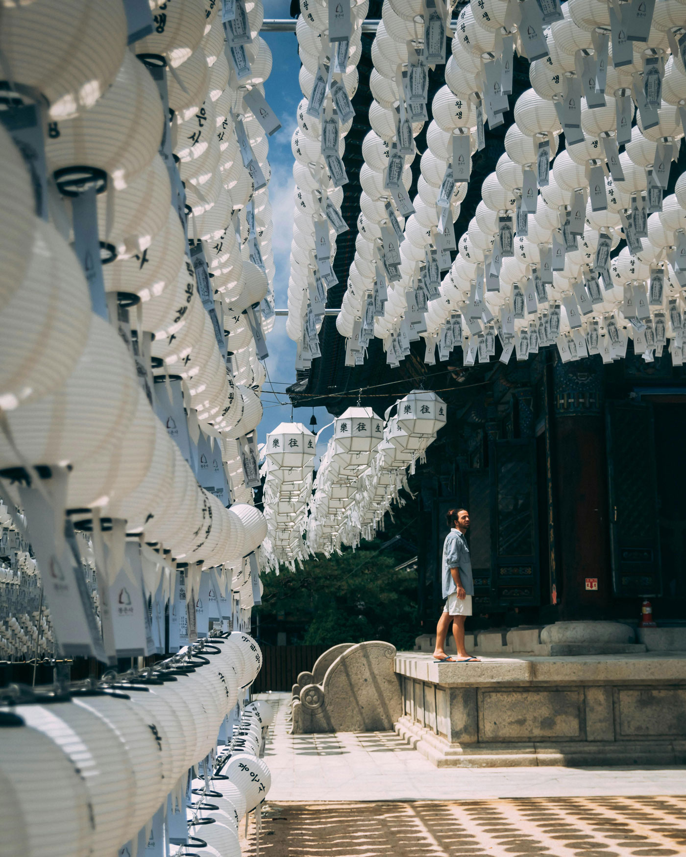 Justo al lado, Bongeunsa Temple ofrece un contraste poderoso. Rodeado de rascacielos, este templo budista invita al silencio. El aire frío, cercano a los -3 °C, acentúa la atmósfera contemplativa. Botas cerradas y capas térmicas hacen que la visita sea tan cómoda como memorable.
