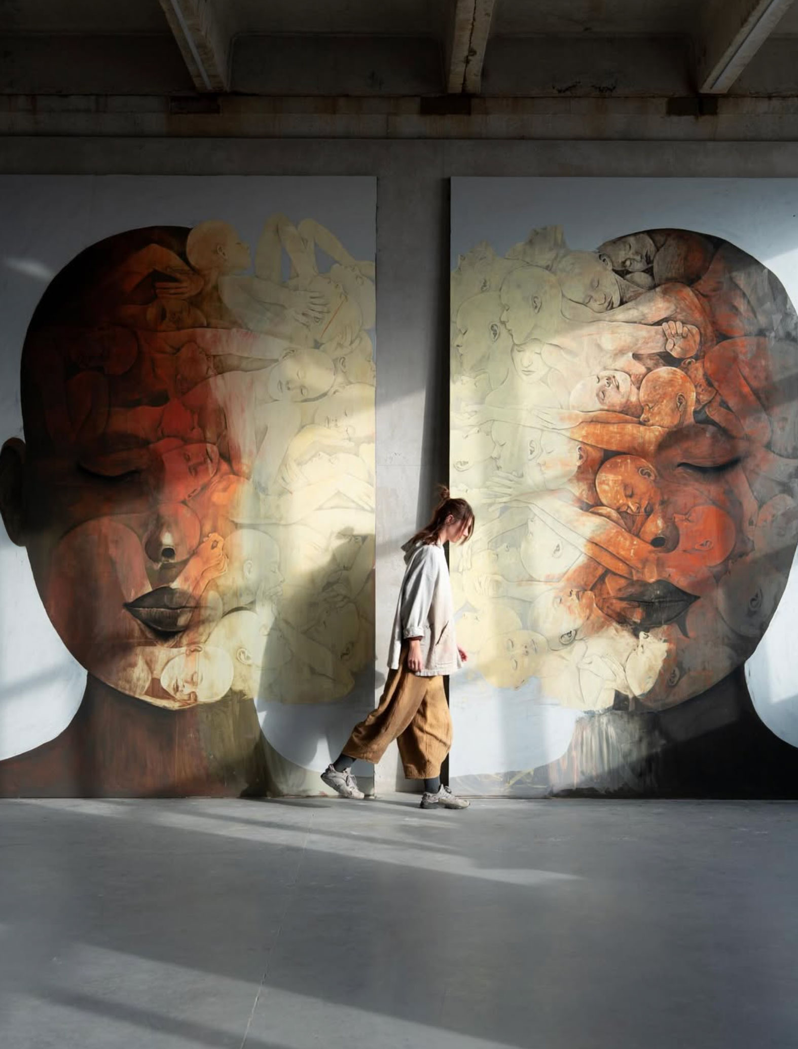 Nacida en Chișinău, Moldavia, esta artista autodidacta construye una obra que oscila entre el realismo y la abstracción sin pedir permiso a ninguno de los dos. Sus sujetos son siempre los mismos: personas, cuerpos, la naturaleza sensual. Pero lo que aparece en el lienzo no es la forma visible de esas cosas, sino lo que vive debajo: los complejos, las emociones que no encuentran salida, las tensiones que todos reconocemos y pocos saben nombrar.